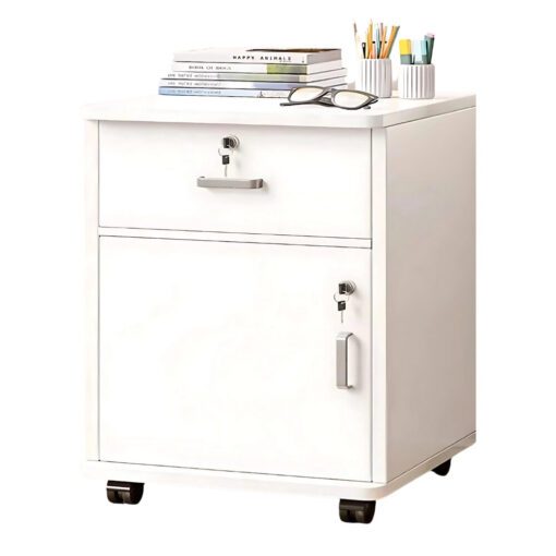 A lockable cabinet with drawers for safe and convenient storage. Perfect for office or home use to keep personal items or work documents secure.