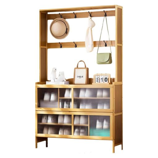 A tall storage unit perfect for hallways, with shelves, hooks, and cubbies for everyday essentials. Keeps your entryway stylish and organized.